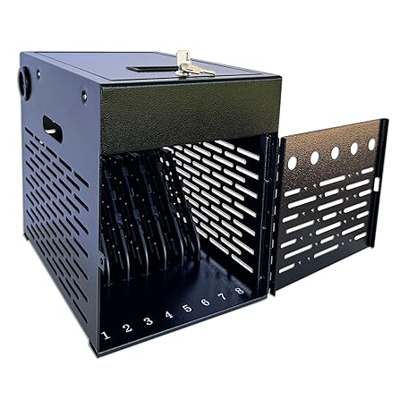 8-Device Tablet Charging Station, Lockable Steel Case Fits 14" Chromebooks, iPads, Laptops & Tablets, Secure Storage with 2 Keys, Ideal for Classrooms, Offices & Hospitals, Black