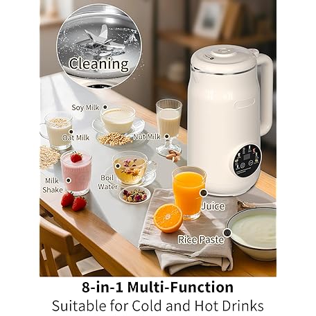 Thông tin sản phẩm 8 in 1 Nut Milk Maker Machine, 50oz Automatic Soy Milk Maker with 10 Blades, Blender for Plant Based Milk, Oat, Almond, Juice, Rice Paste &More with Delay Start, Keep Warm, Boil Water, Self Cleaning