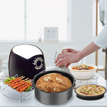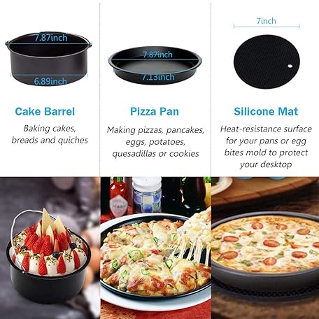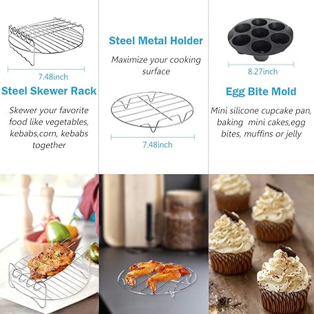 8 Inch Air Fryer Accessories Set of 10 for 3.5Qt-5.8Qt Phillips Nuwave Gowise Gourmia Ninja Dash Air Fryer, with Egg Bites Mold, Pizza Pan, Cake Barrel, Skewer Rack, Silicone Mat, Air Fryer Liners