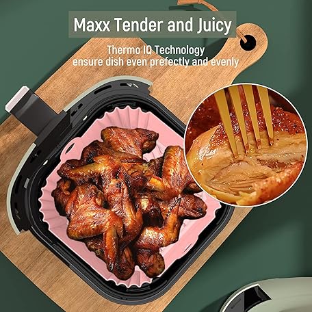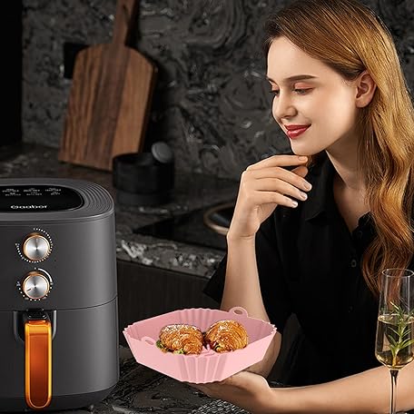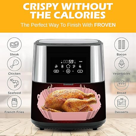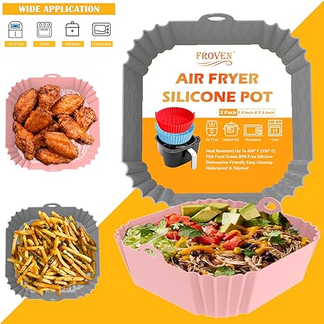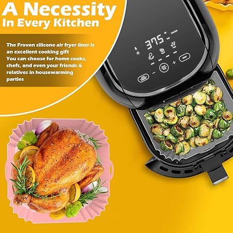 • 8 Inch Square Silicone Air Fryer Liners (2 Pack) Pink & Grey Reusable Non-Stick Inserts with Handles for Mess-Free Cooking & Heat Resistance – For Airfryer Ninja COSORI Instant Vortex & More