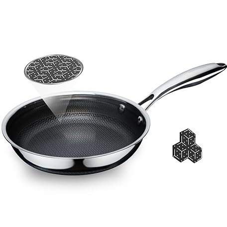 Sản phẩm 8" Non Stick Frying Pans, Hybrid Ceramic Stainless Steel Pan, Skillet with Stay-Cool Handle, Non Toxic, PFAS PFOA PTFE Free, Dishwasher & Oven Safe, Induction, Compatible with All Cooktops đang được bán với giá ưu đãi là $31.3811 tại nước Mỹ.