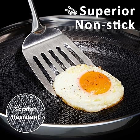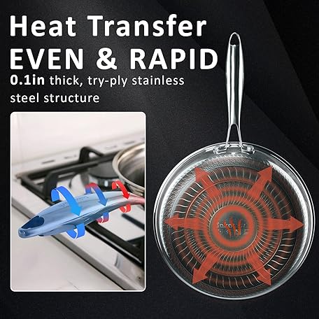 Thông tin sản phẩm 8" Non Stick Frying Pans, Hybrid Ceramic Stainless Steel Pan, Skillet with Stay-Cool Handle, Non Toxic, PFAS PFOA PTFE Free, Dishwasher & Oven Safe, Induction, Compatible with All Cooktops