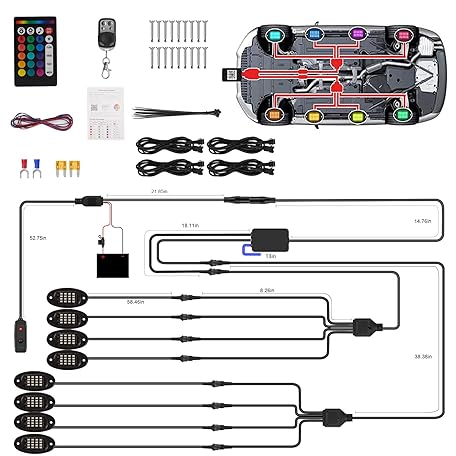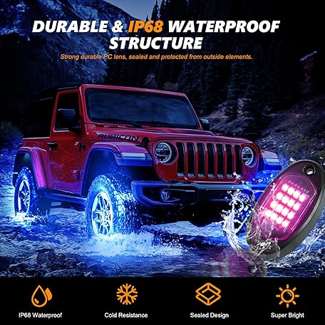 Thông tin sản phẩm 8 Pods RGB LED Rock Lights for Jeeps Trucks Golf Cart ATV UTV RZR SUV Offroad Pickup Car, Waterproof Multicolor Underglow Kit with APP Music Mode Underbody Neon Light Vehicle Underneath Accent 12V