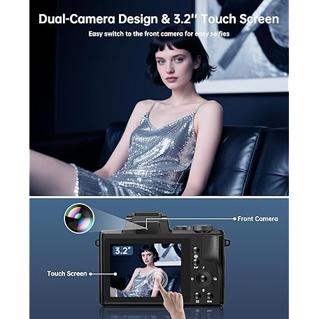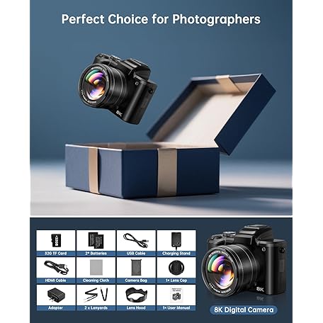 Thông tin sản phẩm 8K Digital Cameras for Photography Autofocus 88MP WiFi Professional 16X Digital Zoom Photography Camera with Dual-Lens for YouTube with Lens Hood, Touch Screen, 2 Batteries & Charging Stand