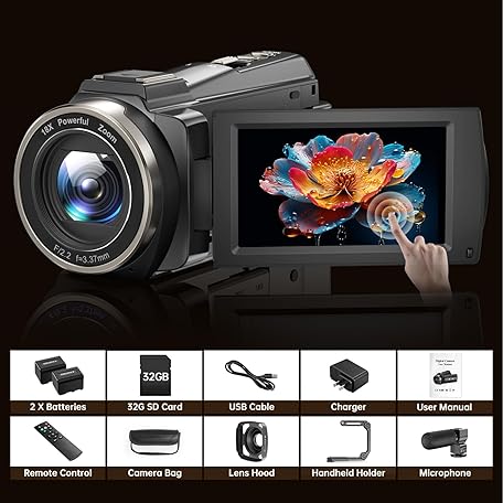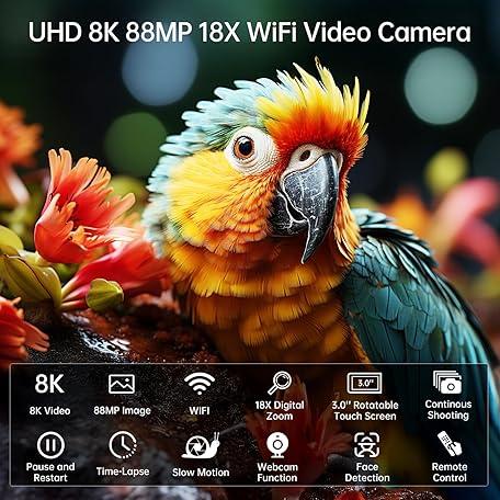 Thông tin sản phẩm 8K Video Camera Camcorder 88MP UHD WiFi Vlogging Cameras for YouTube 18X Digital Zoom IR Night Vision 3.0''Touch Screen Camera with 32GB Card, Microphone, Stabilizer, Lens Hood, Remote, Batteries