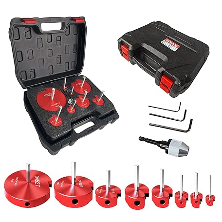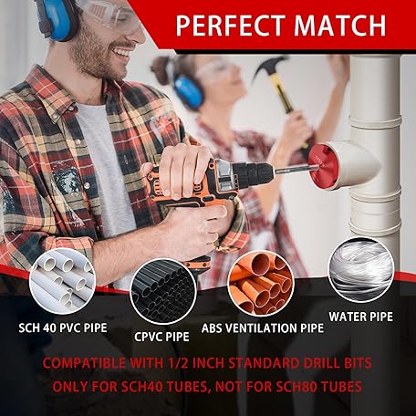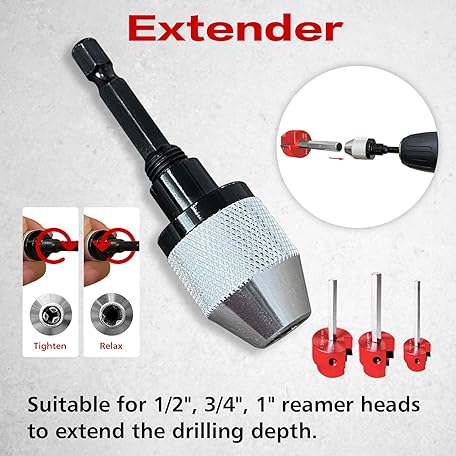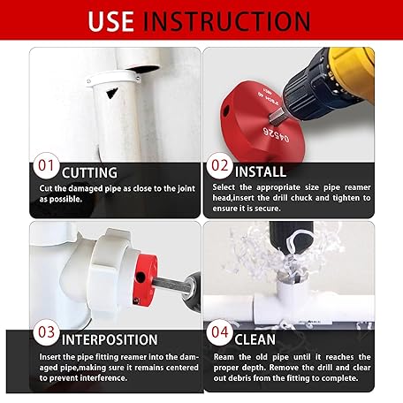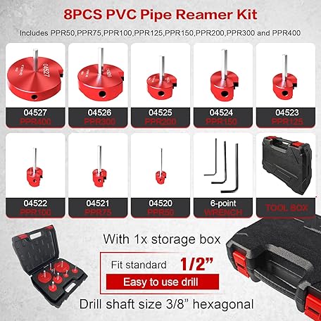 8Pcs Pvc Pipe Reamer Kit,Pipe Fitting Tools Contains 1/2", 3/4",1",1-1/4",1-1/2",2",3",4" Aluminum Head with a Extender,Fit into Standard 1/2" Drill,PVC Fitting Saver for PVC,CPVC,PPR or ABS,Red