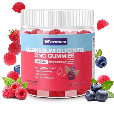 90 CT Magnesium Glycinate Gummies 600mg, Sugar Free Magnesium Gummies w/Zinc & Vitamin D3 & K2 - Magnesium Supplements for Sleep, Supports Bone Health, Nerve & Immune Function