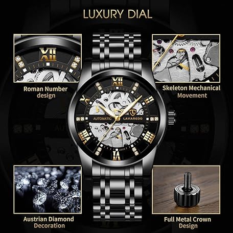 Sản phẩm A ALPS Mens Watch Skeleton Luxury Mechanical Stainless Steel Waterproof Black Automatic Self-Winding Roman Numerals Diamond Dial Wrist Watch đang được bán với giá ưu đãi là $46.8591 tại nước Mỹ.