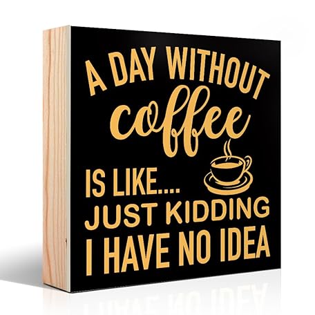 A Day Without Coffee Is Like Just Kidding I Have No Idea Wooden Box Sign, Funny Sayings Decor for Home Farmhouse Eating Area Cafe Kitchen, Coffee Lover Gifts for Women Men Friends Sister
