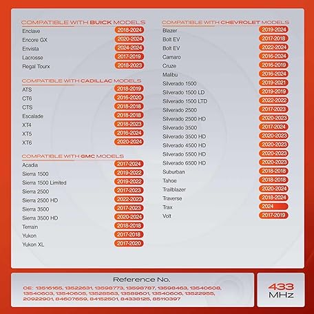 • A-Premium 4PCS Pre-Programmed TPMS Sensor Tire Pressure Monitoring Sensor - Compatible with Chevy, GMC, Cadillac & Buick - Camaro, Cruze, Malibu, Silverado, Sierra, Terrain, Yukon, Lacrosse - 433MHz