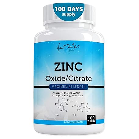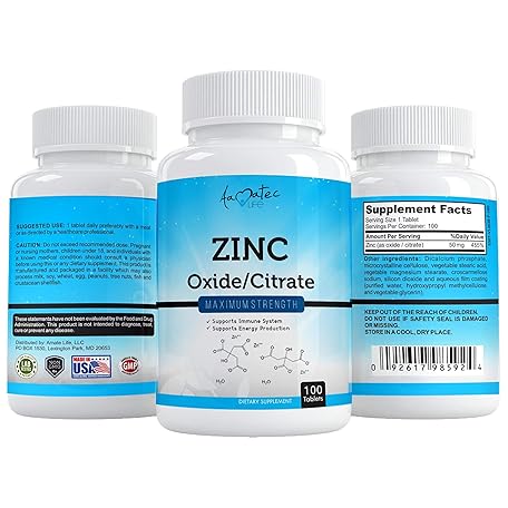 Aamatec Life Zinc Supplement 50 mg - Oxide/Citrate for Immune Support and Metabolism Support - Vegan Zinc 50mg Supports Heart and Eye Health - 100 Tables for Men and Women