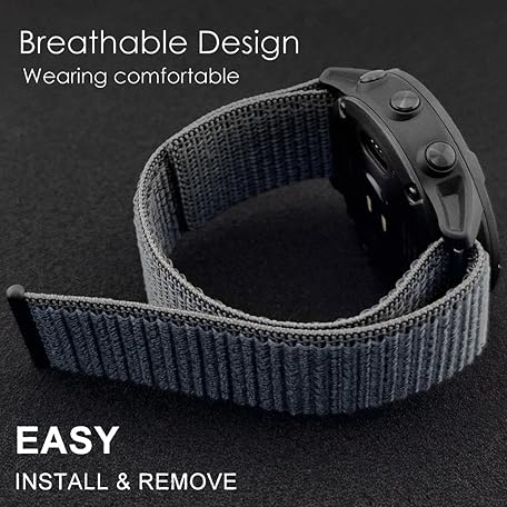 Abanen Hook and Loop Quick Dry Watch Band for Fenix 8 47mm/ epix Pro 47mm / Fenix 7/6/5, 22mm Woven Nylon Ultralight Sport Wristband Strap for Garmin Instinct 2, Instinct 3 45mm