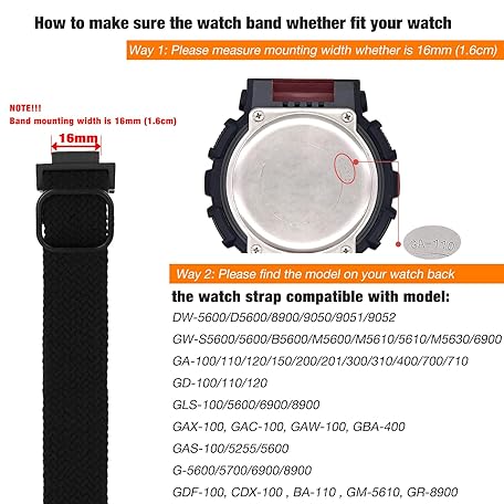 Thông tin sản phẩm Abanen Stretchy Solo Loop Watch Bands for Casio gshock DW-5600/8900, Soft Elastic Adjustable Braided Wristband Strap with Adjustable Buckle for Casio GA-100/GW-B5600/GB-5600 /GW-6900