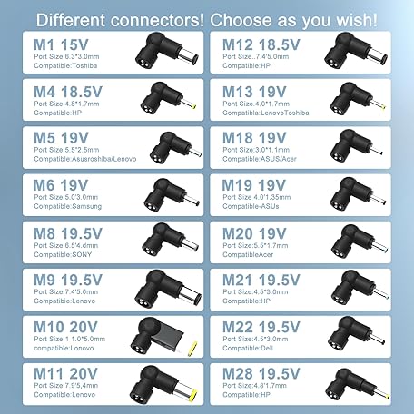 • Abcurd 90W Universal Laptop Charger Compatible for HP Asus Gateway Acer Lenovo IBM Dell Toshiba Samsung Sony Fujitsu Notebook Ultrabook Chromebook Computer Power Supply Cord AC Adapter with 16 Tips