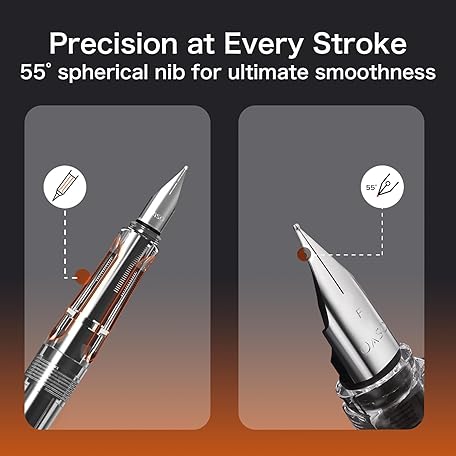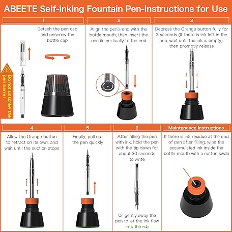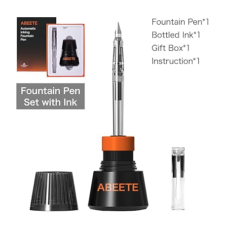 Thông tin sản phẩm ABEETE Self-Inking Fountain Pen Set, Auto Ink Refill No Cartridges or Converter Needed, Includes Black Bottled Ink, Clear Barrel, Chrome Trim, Fine Nib-Smooth Writing, Journaling, Calligraphy