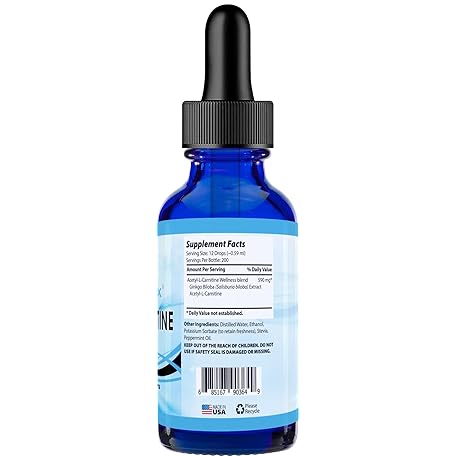Absonutrix Acetyl L-Carnitine, 593mg per Serving, 200 Potent Servings, Quick Absorption Liquid Drops, Gluten-Free, Third-Party Tested, GMP-Certified, Non-GMO, Made in USA