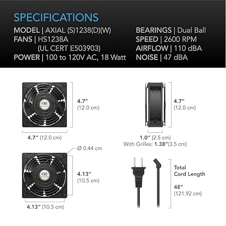 Thông tin sản phẩm AC Infinity AXIAL S1238D, Dual 120mm Muffin Fan with Speed Controller, UL-Certified for Doorway, Room to Room, Wood Stove, Fireplace, Circulation Projects
