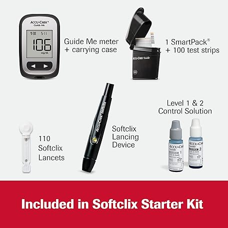 Thông tin sản phẩm Accu-Chek Softclix Glucose Monitor Kit for Diabetic Blood Sugar Testing: Guide Me Meter, Softclix Lancing Device & 110 Lancets, 100 Guide Test Strips, and Control Solution (Packaging May Vary)