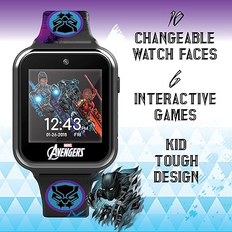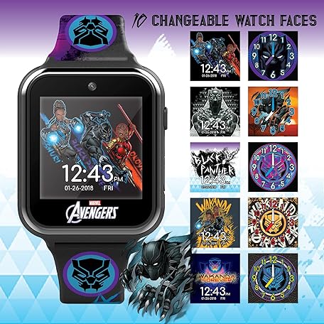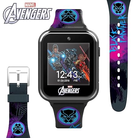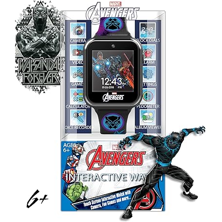 Thông tin sản phẩm Accutime Kids Marvel Black Panther Black Educational ,Touchscreen Smart Watch Toy for Boys, Girls, Toddlers - Selfie Cam, Learning Games, Alarm, Calculator, Pedometer (Model: AVG4608AZ)
