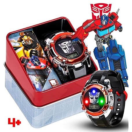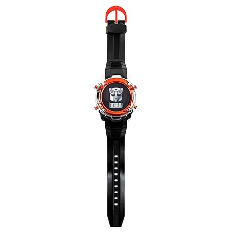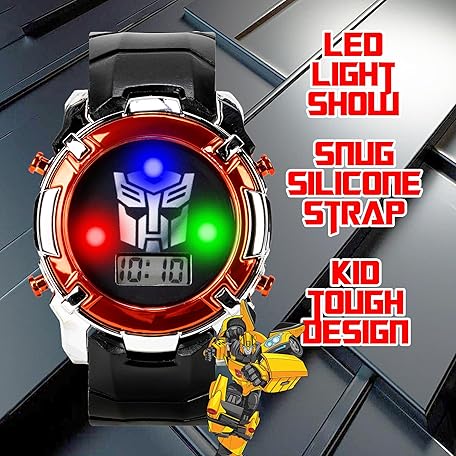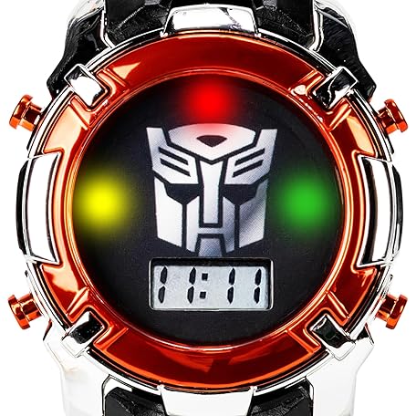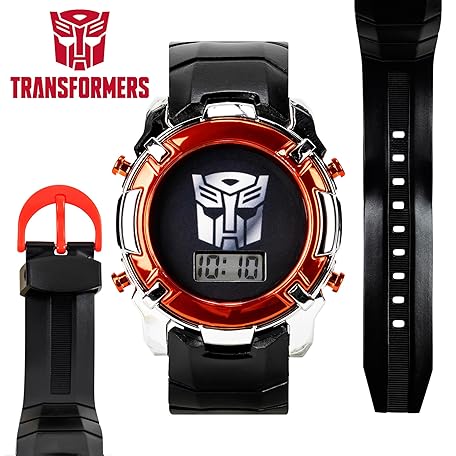 Thông tin sản phẩm Accutime Transformers LCD Digital Watch for Kids - Iconic Autobot Design, Flashing LED Lights, Black and Red Durable Strap, Comes in Collectible Tin Box