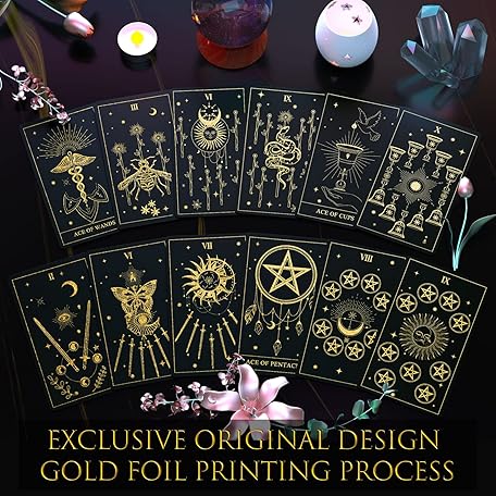 Thông tin sản phẩm ACELION Original Tarot Card Set with Guide, 78 Pieces of Tarot Cards with Gold foil on The Surface, Fortune-Telling Game, Tarot for Beginners