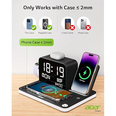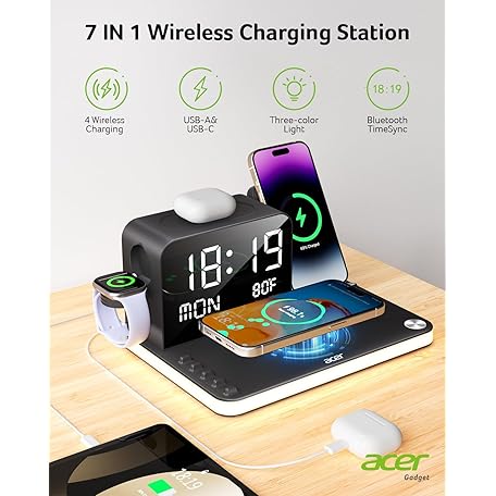 Thương hiệu acer là cái tên nổi tiếng được rất nhiều khách hàng trên thế giới chọn lựa. Với kiểu dáng đẹp mắt, sang trọng, sản phẩm acer 7-in-1 Wireless Charging Station: Charger Stand for Multiple Devices for Apple - iPhone 16 15 14 13 12 Pro Max Apple Watch Airpods, Wireless Charger iPhone Charging Station with Bluetooth TimeSyn là sự lựa chọn hoàn hảo nếu bạn đang tìm mua một món cho riêng mình.