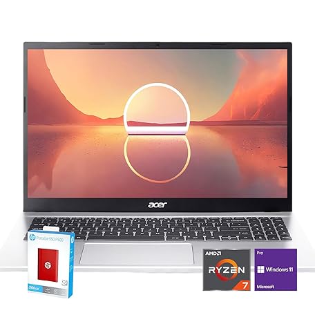 • acer Aspire 3 Laptop | 15.6" FHD (1920 x 1080) Display | AMD Radeon | 8-Core AMD Ryzen 7-5700U | 32GB RAM | 1TB SSD (512GB PCIe SSD withHP P500 512GB Portable SSD) | Ethernet Port | Windows 11 Pro