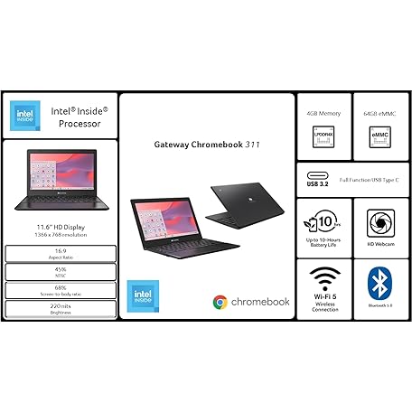 Sản phẩm acer Gateway Chromebook 311 CBO311-1H-C1MX Laptop | Intel Celeron N4500 | 11.6" HD (1366 x 768) Display | 4GB LPDDR4X | 64GB eMMC | Wi-Fi 5 802.11ac | Chrome OS | Star Black đang được bán với giá ưu đãi là $205.8792 tại nước Mỹ.