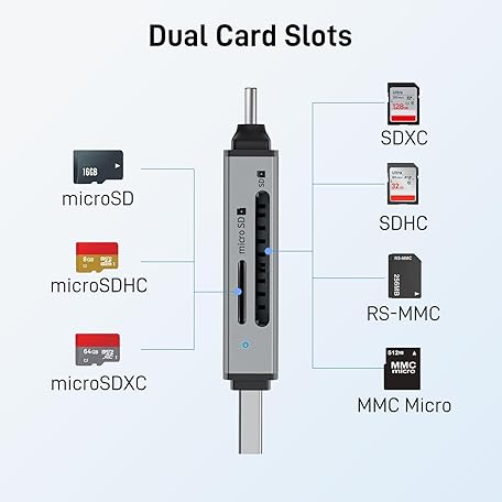 Thông tin sản phẩm acer SD Card Reader USB C, Dual Slots USB 3.0 Type C to Micro SD Card Adapter, Memory Card Reader for MicroSD, SDHC, SDXC, Compatible with Laptop, PC, iPhone16/15, MacBook Pro/Air, iPad Pro, Android