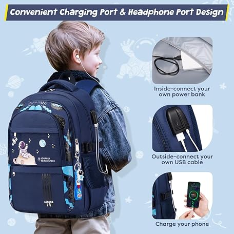 • ACESAK Backpack for Boys - Boy Backpack Schoolbag for Boys Kids Children Teens Girls Elementary Middle School Bags, Waterproof Lightweight Kids Bookbag Backpacks Casual Daypack with Lunch Bag Set