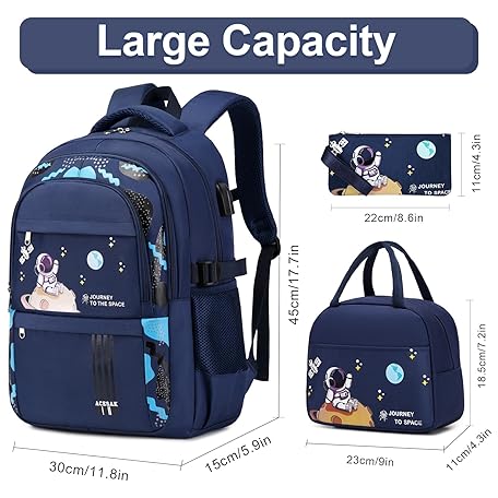 Thông tin sản phẩm ACESAK Backpack for Boys - Boy Backpack Schoolbag for Boys Kids Children Teens Girls Elementary Middle School Bags, Waterproof Lightweight Kids Bookbag Backpacks Casual Daypack with Lunch Bag Set