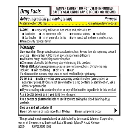 Sản phẩm Acetaminophen 500mg, Extra Strength Rapid Release, 400 Gelcaps đang được bán với giá ưu đãi là $32.6891 tại nước Mỹ.