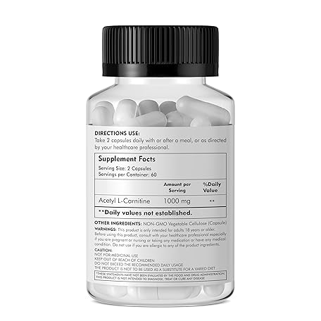 Thông tin sản phẩm Acetyl L-Carnitine 1,000 mg High Potency Supports Energy Production, Sports Nutrition, Supports Memory/Focus - 120 Veggie Capsules