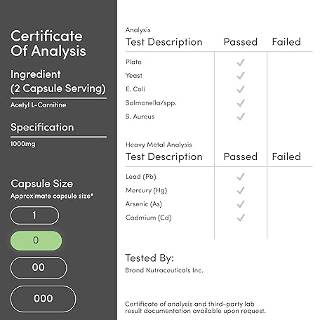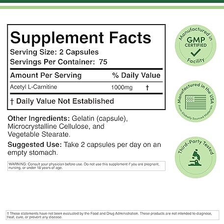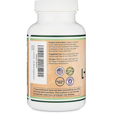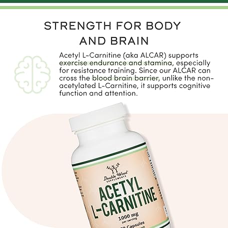 Thông tin sản phẩm Acetyl L-Carnitine 1,000mg Per Serving, 150 Capsules (ALCAR for Brain Function Support, Memory, Attention, and Stamina) Acetyl L Carnitine That is Third Party Tested by Double Wood