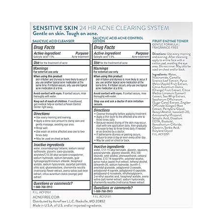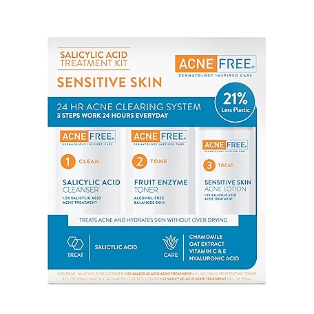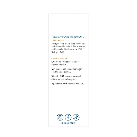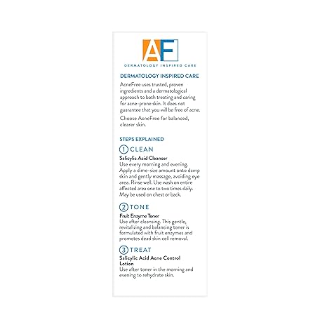 Thông tin sản phẩm AcneFree 3 Step Acne Treatment Kit Salicylic Acid Acne Face Wash and Alcohol Free Toner with Benzoyl Peroxide Lotion, Anti Acne Solution for Teenagers and Adults for Sensitive Skin, 3 Piece Set, Tea Tree