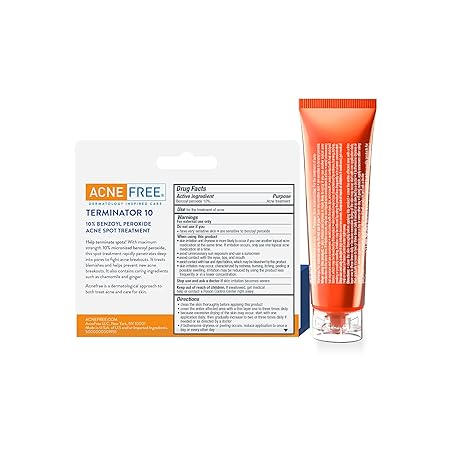 Sản phẩm AcneFree Terminator 10 Acne Spot Treatment with Benzoyl Peroxide 10% Maximum Strength Acne Cream Treatment, 1 Ounce - Pack Of 1 đang được bán với giá ưu đãi là $5.9623 tại nước Mỹ.
