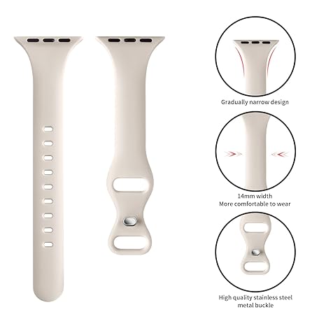 Sản phẩm Acrbiutu Thin Slim Band Compatible with Apple Watch 38mm 40mm 41mm 42mm 44mm 45mm 46mm 49mm, Replacement Silicone Sport Strap for iWatch Series 10/9/8/7/6/5/4/3/2/1 Ultra SE Women Men, Starlight đang được bán với giá ưu đãi là $6.0277 tại nước Mỹ.