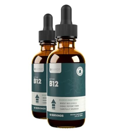 Active B-12 Liquid B12 Supplement, Supports Energy and a Healthy Nervous System - Convenient Liquid Dropper Absorbs Fast & Tastes Great - 2Pack