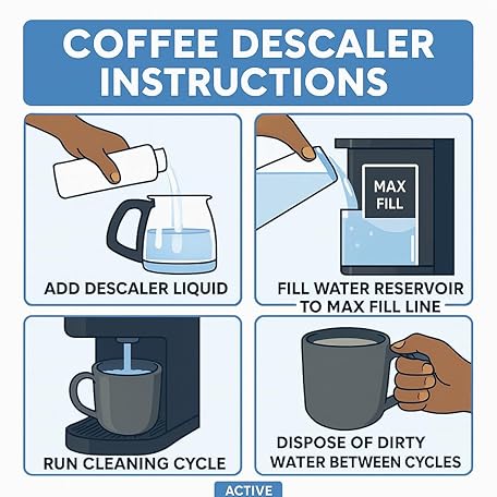Thông tin sản phẩm ACTIVE Coffee Machine Descaler Descaling Solution - 32oz (8 Uses) Compatible with Keurig,Nespresso,Breville,Delonghi, Jura, Ninja - Espresso Coffee Maker Cleaner,Coffee Pot Cleaning Limescale Remover