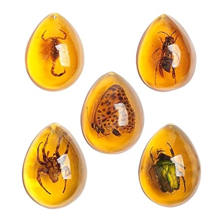 Sản phẩm Acxico 5pcs Amber Fossil with Insects Samples Stones Crystal Specimens Home Decorations Collection Oval Pendant (Green Armor + Scorpion + Flower Butterfly + Wasp + Spider) đang được bán với giá ưu đãi là $14.1591 tại nước Mỹ.