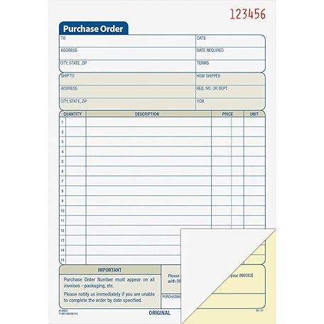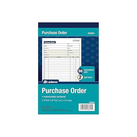 Thông tin sản phẩm Adams Purchase Order Book, 2-Part Carbonless, White/Canary, 5-9/16 x 8-7/16 Inches, 50 Sets (DC5831)