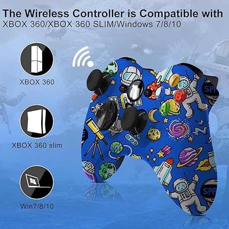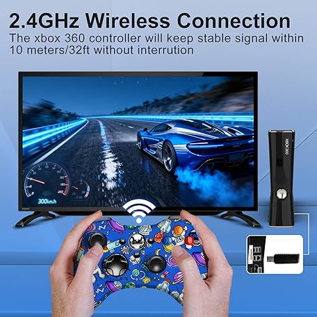 ADHJIE Xbox 360 Controller, 2.4GHz Wireless Controller for Xbox 360/Xbox 360 Slim/Windows 10 with 3.5mm Audio Headphone Jack & 1000mAh Built-in Battery, Dual Vibration