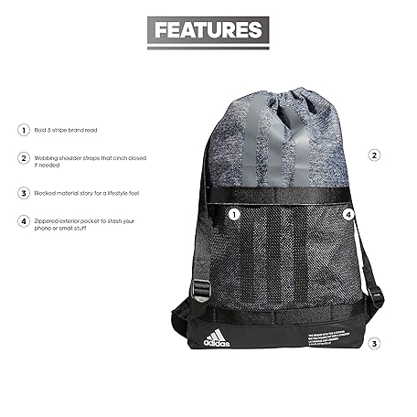 Sản phẩm adidas Amplifier II Blocked Sackpack, Jersey Onix Grey/Black, One Size đang được bán với giá ưu đãi là $26.16 tại nước Mỹ.