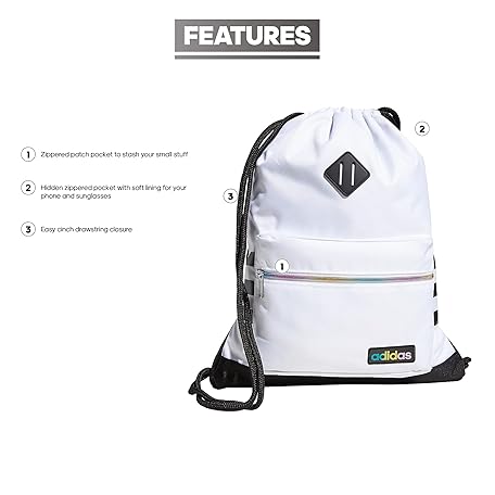 Sản phẩm adidas Classic 3S Sackpack, White/Black/Rainbow Metallic, One Size đang được bán với giá ưu đãi là $28.34 tại nước Mỹ.