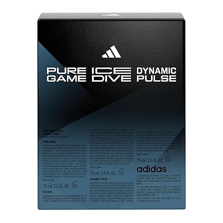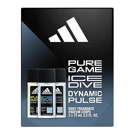 adidas Dynamic Pulse, Ice Dive, Pure Game Giftset, Natural Spray 2.5 fl oz, Notes of Rosemary, Lemon, Peppermint, and Grapefruit, Men's Fragrance, Long Lasting, Sporty Fragrance