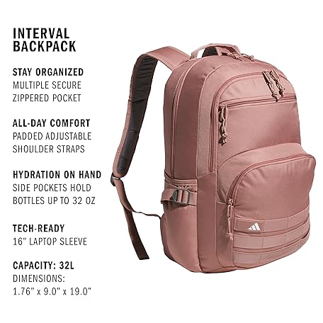 • adidas Interval Backpack with laptop sleeve, lightweight durable book bag for women and men