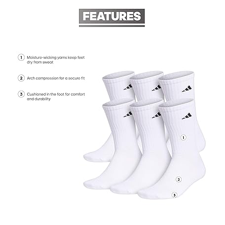 Thương hiệu adidas là cái tên nổi tiếng được rất nhiều khách hàng trên thế giới chọn lựa. Với kiểu dáng đẹp mắt, sang trọng, sản phẩm adidas Men's Athletic Cushioned 6-Pack Crew, Cushioned Crew Socks with Arch Compression for a Secure Fit là sự lựa chọn hoàn hảo nếu bạn đang tìm mua một món cho riêng mình.