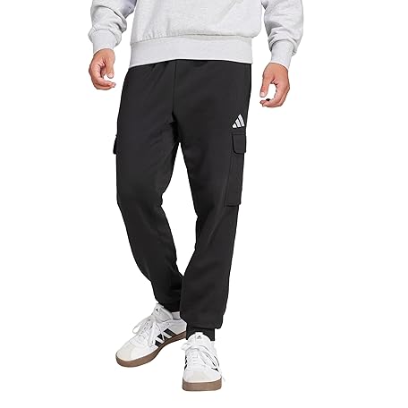 adidas Mens Essentials Feel Cozy Fleece Sportswear Cargo Pants, Black/White, Medium