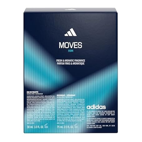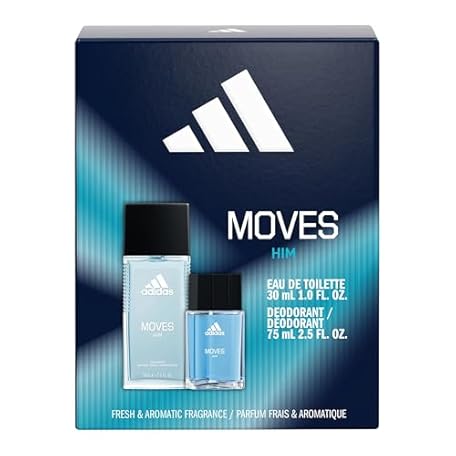 adidas Moves for Him Giftset,1 fl oz EDT + 2.5 fl oz Body Fragrance, Notes of Green Apple, Cedarwood, Musk, Men's Fragrance, Long Lasting, Sporty Fragrance, Travel Size