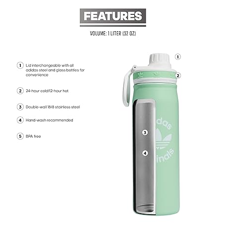 Sản phẩm adidas Originals 600 ML (20 oz) Metal Water Bottle, Hot/Cold Double-Walled Insulated 18/8 Stainless Steel đang được bán với giá ưu đãi là $25.07 tại nước Mỹ.